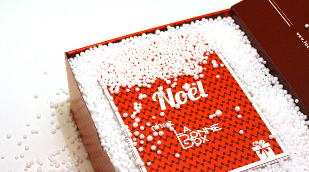 Seul bémol, j’ai remplacé la traditionnelle paille à l’intérieur par des billes de polystyrène. Imaginant la réaction des enfants à l’ouverture de la box, comme des flocons de neige qui s’éparpillent à l’ouverture et font rentrer la magie de Noël chez nous. Mais j’avais oublié un détail : l’électricité statique ! Les enfants s’amusèrent et en mirent partout… Pas très sympa pour papa et maman ! Voici donc une erreur que je ne commettrais plus : toujours anticiper la possible corvée ménage derrière tout packaging…